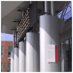 "As we celebrate the 100th anniversary of the conception of public hydroelectric power in Kitchener, P2P highlights the ubiquity of the most basic icons of the electric age: the household switch and bulb. Significantly situated at the entrance to City Hall, P2P puts the marquee, a now-ubiquitous and iconic tool of corporate communication, into the hands of the general public. By engaging in the everyday unconscious activity of flipping a light switch, citizens are able to communicate directly, without the oversight of a centralized authority, within a government-owned public space. Literally and figuratively, P2P brings Power to the People."