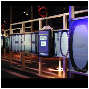 XFR is the result of a partnership between the Xerox Palo Alto Research Center (PARC) and The Tech Museum of Innovation to explore and demonstrate how PARC's cutting-edge technologies could create new, engaging and dynamic forms of reading. The exhibition challenged the standard conventions of museum design, resulting in measurably engaging exhibits with unusually high stickiness.